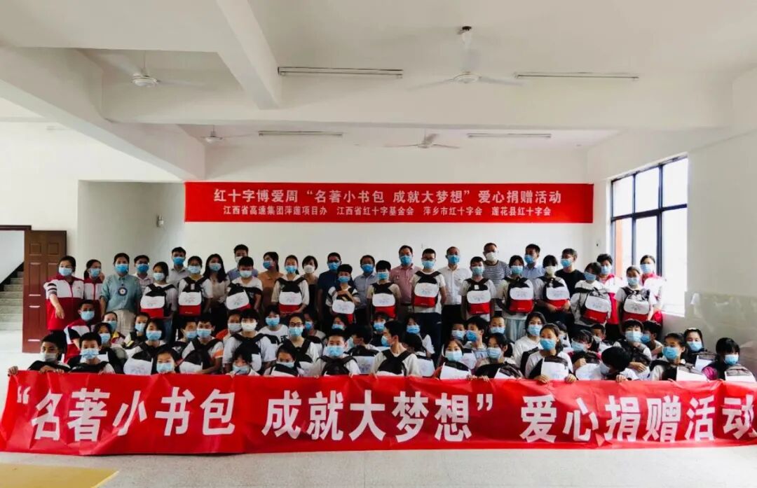 2020年5月,江西省红十字基金会向莲花县南村中学捐赠名著小书包。