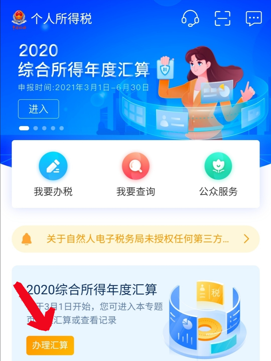 第一步:打开“个人所得税”APP,点击进入“综合所得年度汇算”,填写基础信息。
