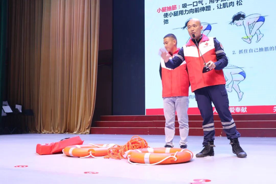 启动仪式结束后,吉安市红十字会的三位培训老师为全场师生开展了一场“溺水预防与应急救护”主题培训。老师们用救生圈、救生绳、模型人等道具为大家生动地演示了如何预防溺水以及溺水时的自救互救措施,学生们与培训老师现场互动,学习得十分认真。